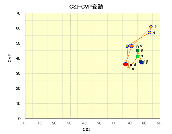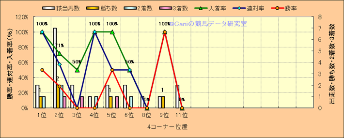 近走における4コーナーでの位置取りと上がり順位(頭数補正後) |