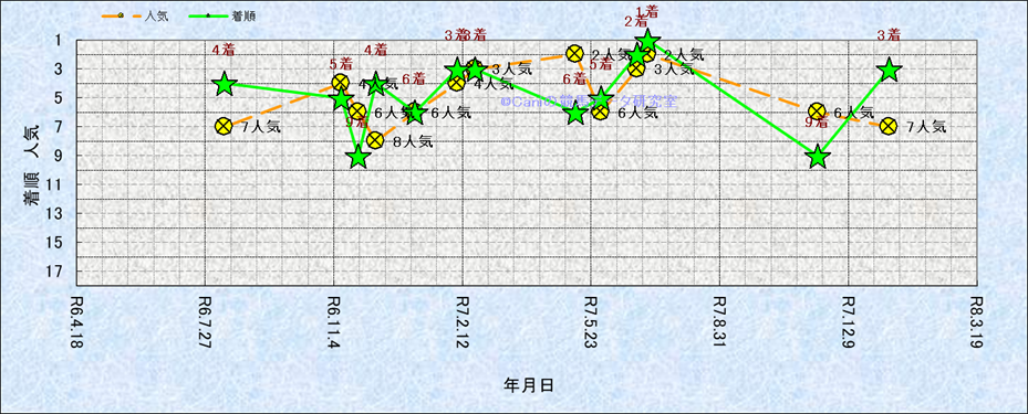 脚質解析 近20レースの4コーナーでの位置取りと上がり順位(頭数補正後) |