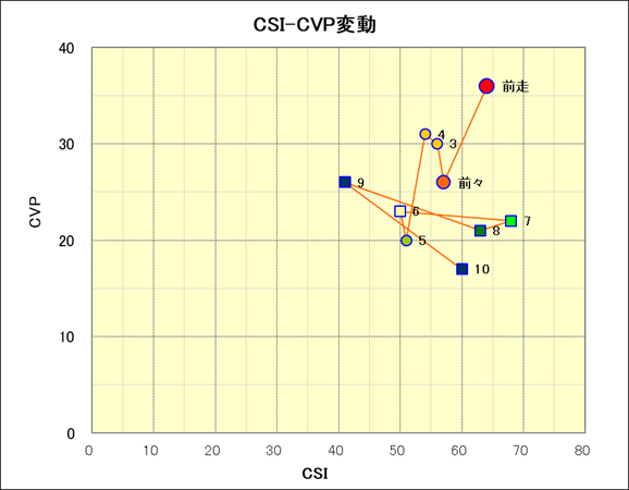 近走における4コーナーでの位置取りと上がり順位(頭数補正後) |