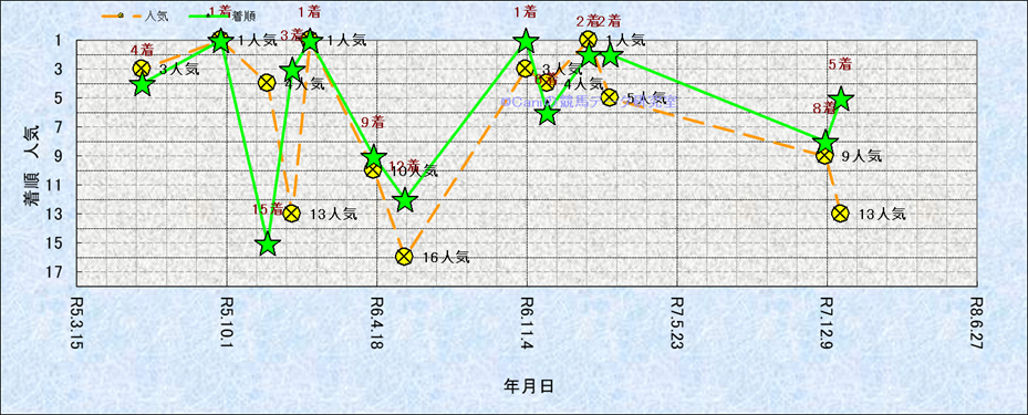 脚質解析 近20レースの4コーナーでの位置取りと上がり順位(頭数補正後) |