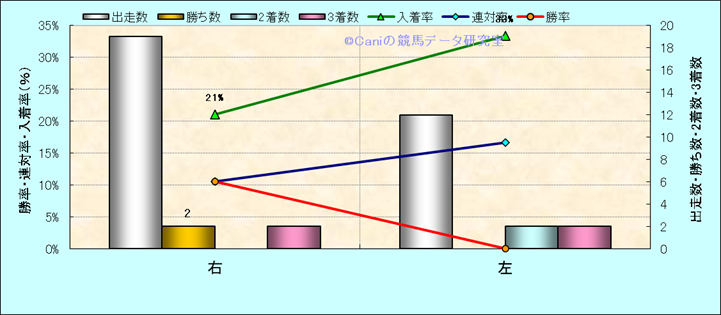 コース、最後の直線の高低差別成績(平地) |