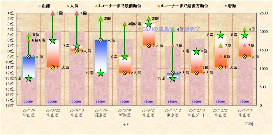 近10走 人気−着順-位置取りの推移 |
