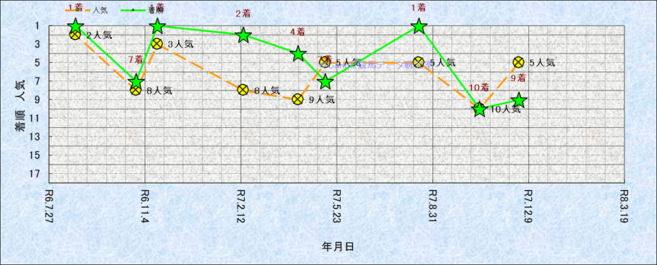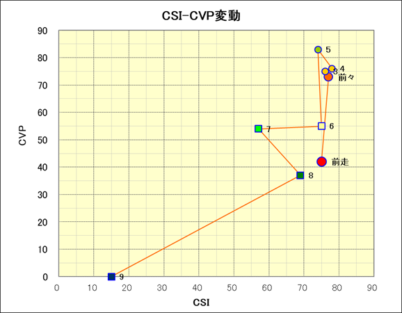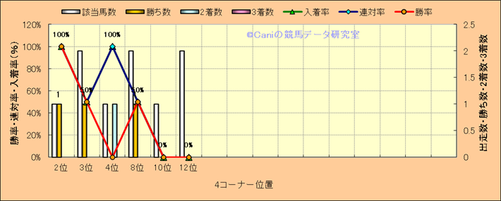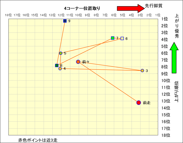近走における4コーナーでの位置取りと上がり順位(頭数補正後) |