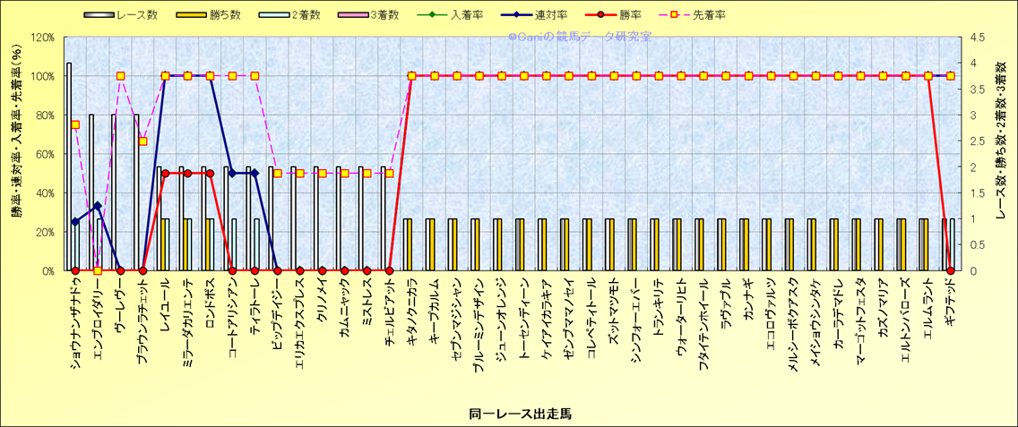 ライバル(相性)解析 同一レースに下記馬が出走した場合の成績とその馬に先着する先着率 |