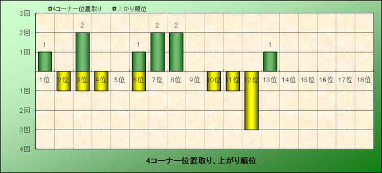 脚質解析 近20レースの4コーナーでの位置取りと上がり順位(頭数補正後) |