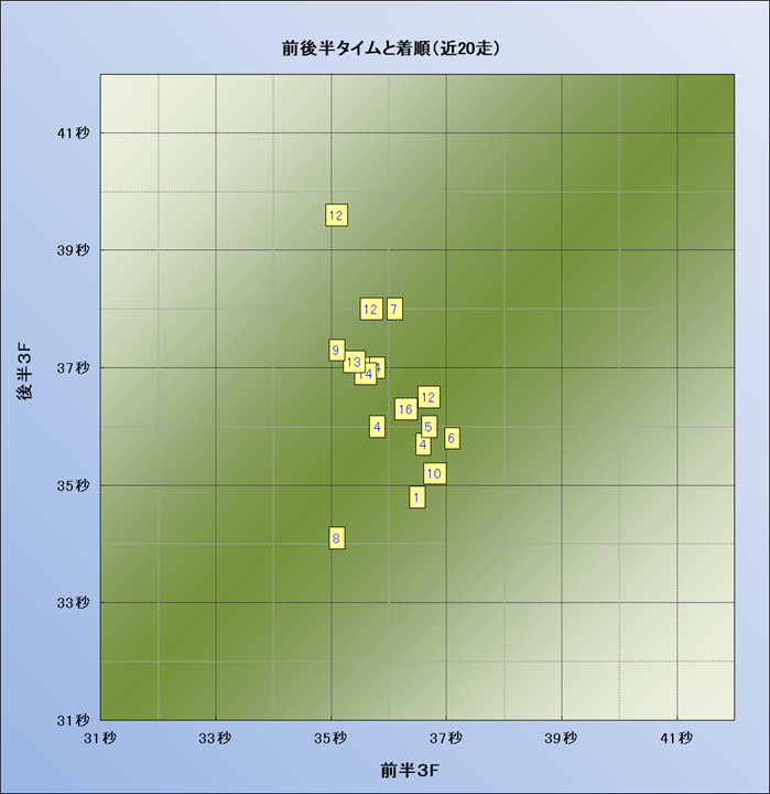 脚質解析 近20レースの4コーナーでの位置取りと上がり順位(頭数補正後) |