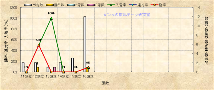 コース、最後の直線の高低差別成績(平地) |