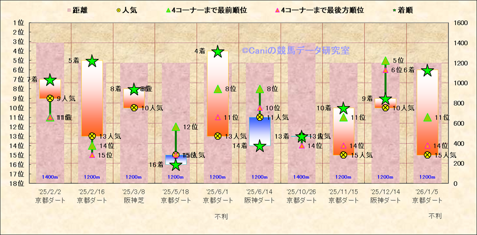 近10走 人気−着順-位置取りの推移 |