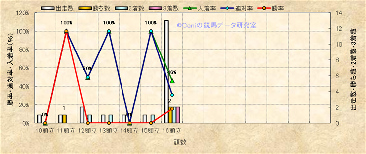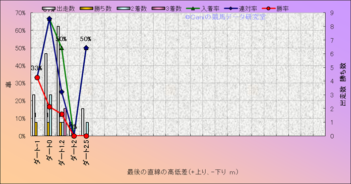コース、最後の直線の高低差別成績(平地) |