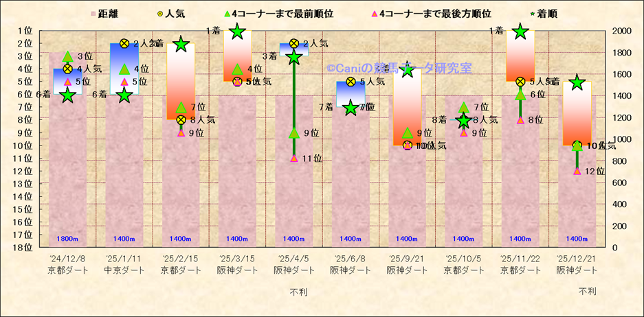 近10走 人気−着順-位置取りの推移 |