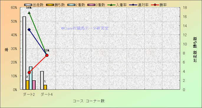 コース、コーナー数別成績(平地) |