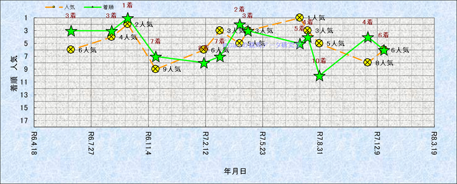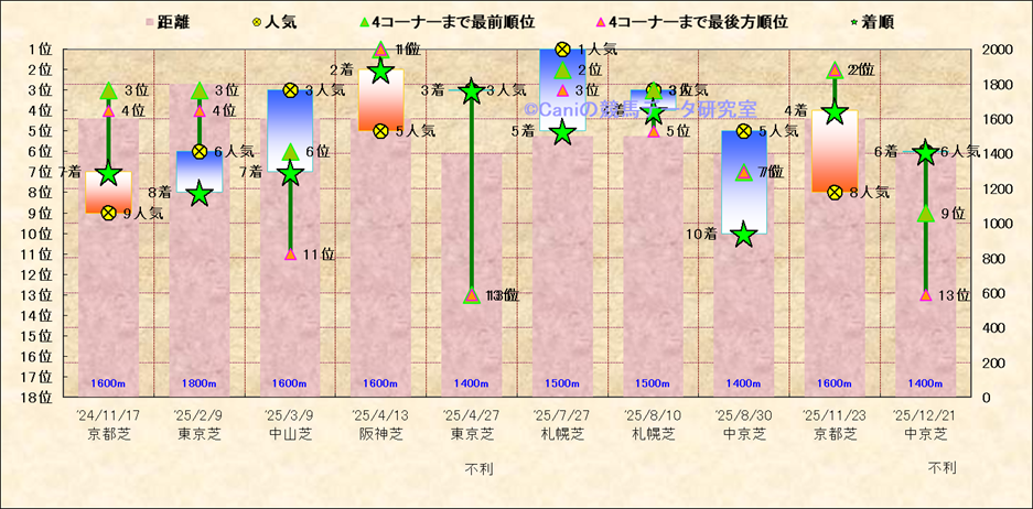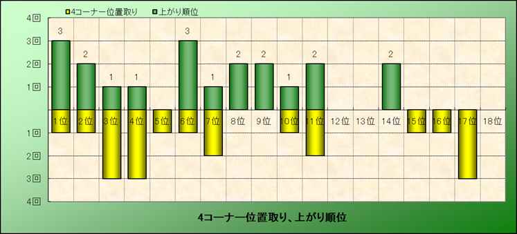 脚質解析 近20レースの4コーナーでの位置取りと上がり順位(頭数補正後) |