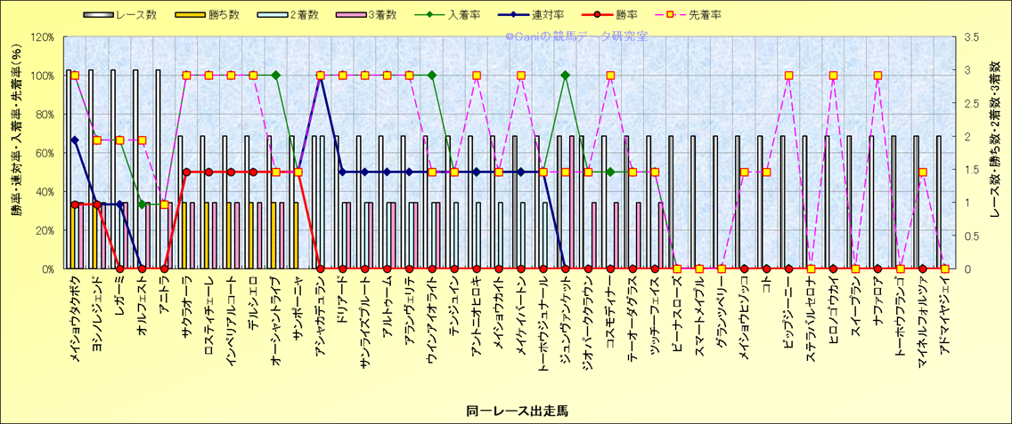 ライバル(相性)解析 同一レースに下記馬が出走した場合の成績とその馬に先着する先着率 |