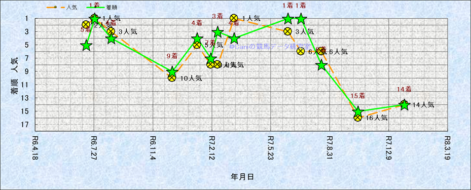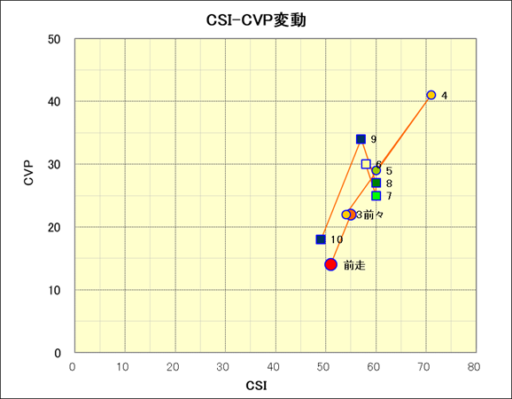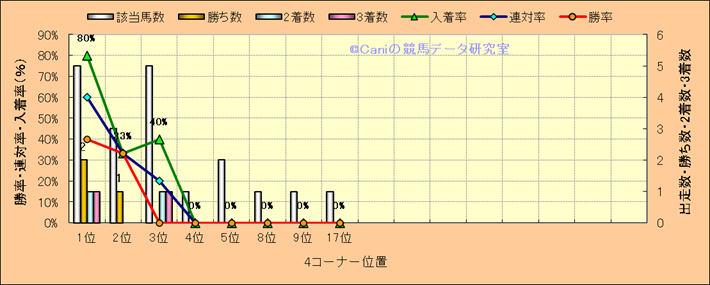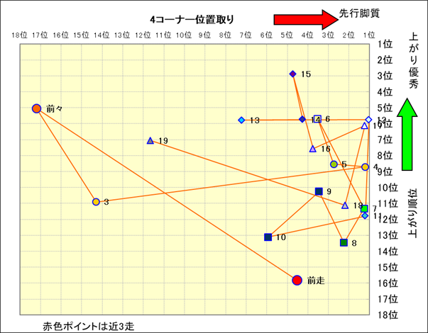 近走における4コーナーでの位置取りと上がり順位(頭数補正後) |