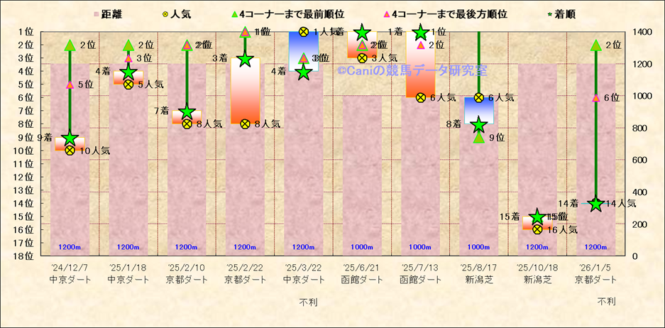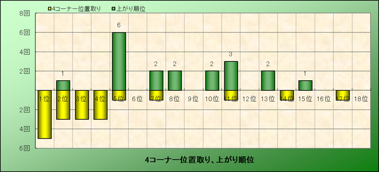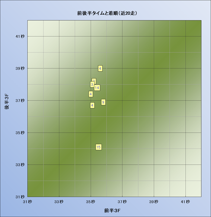 脚質解析 近20レースの4コーナーでの位置取りと上がり順位(頭数補正後) |