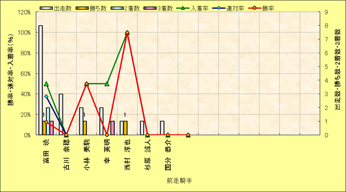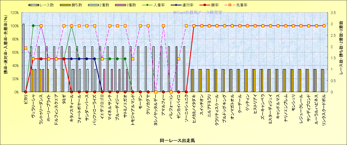 ライバル(相性)解析 同一レースに下記馬が出走した場合の成績とその馬に先着する先着率 |