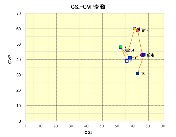 近走における4コーナーでの位置取りと上がり順位(頭数補正後) |
