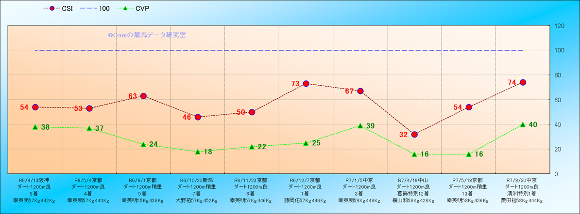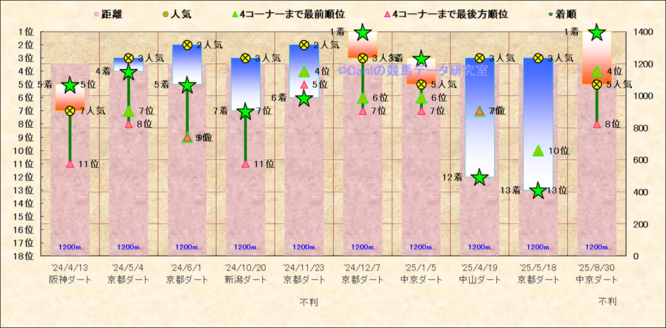 脚質解析 近20レースの4コーナーでの位置取りと上がり順位(頭数補正後) |