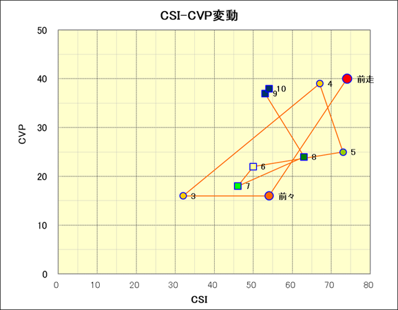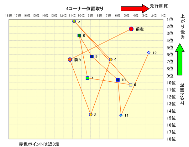 近走における4コーナーでの位置取りと上がり順位(頭数補正後) |