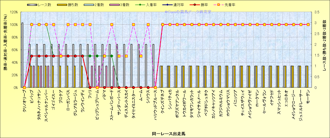 ライバル(相性)解析 同一レースに下記馬が出走した場合の成績とその馬に先着する先着率 |