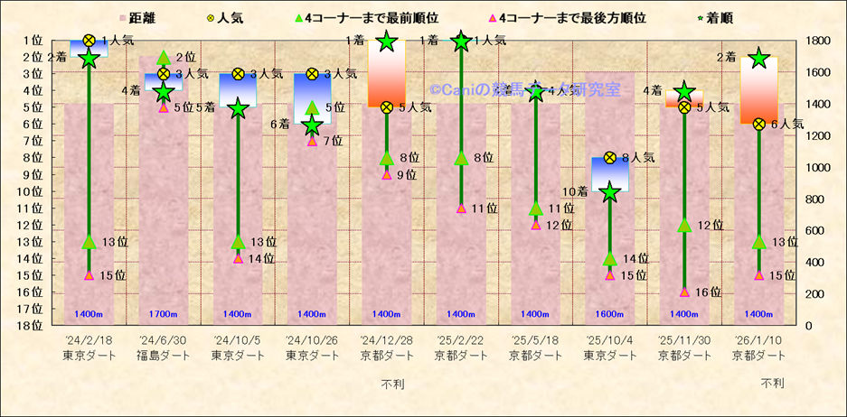 近10走 人気−着順-位置取りの推移 |