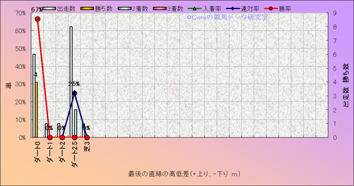 コース、最後の直線の高低差別成績(平地) |
