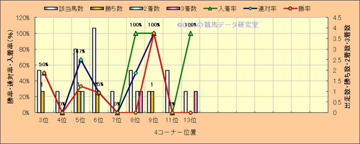 近走における4コーナーでの位置取りと上がり順位(頭数補正後) |