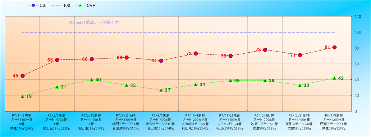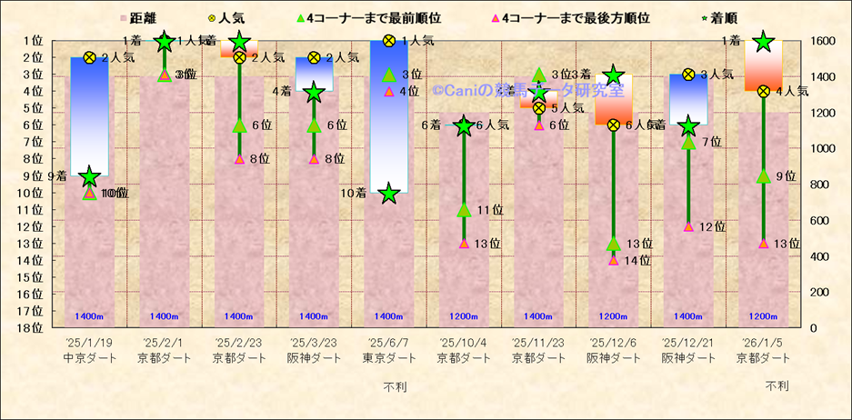 脚質解析 近20レースの4コーナーでの位置取りと上がり順位(頭数補正後) |