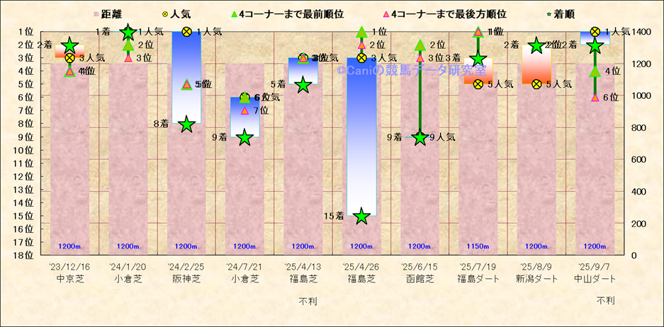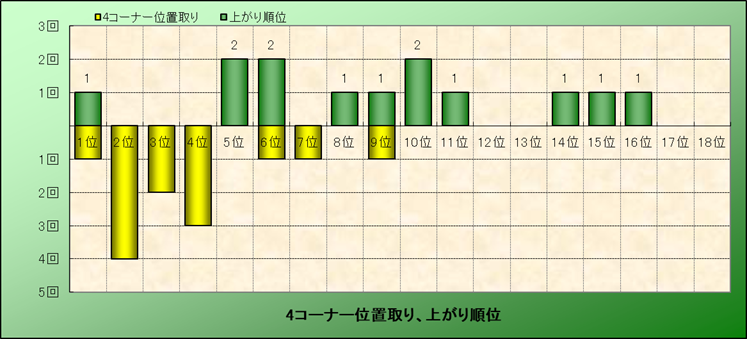 脚質解析 近20レースの4コーナーでの位置取りと上がり順位(頭数補正後) |