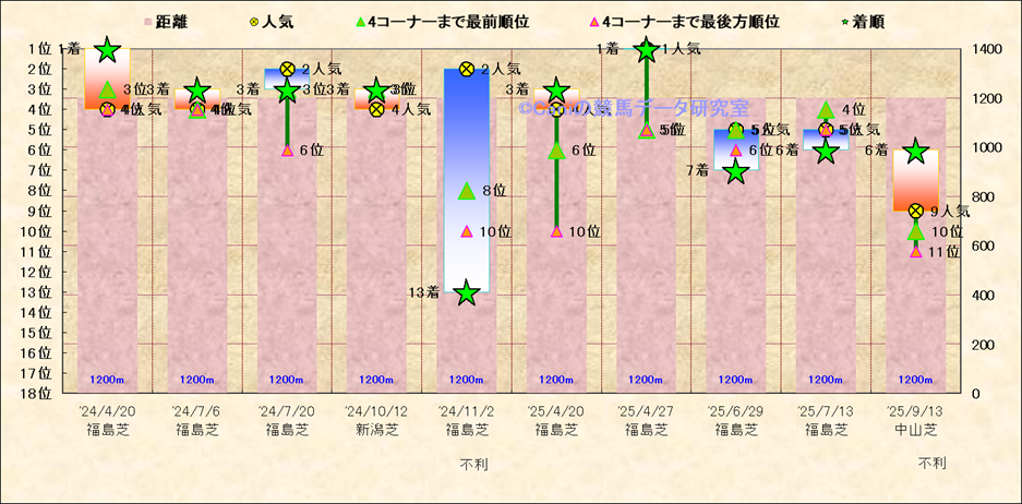近10走 人気−着順-位置取りの推移 |