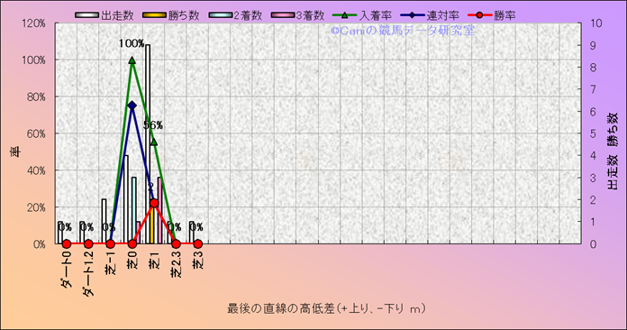 コース、最後の直線の高低差別成績(平地) |