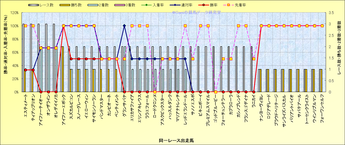 ライバル(相性)解析 同一レースに下記馬が出走した場合の成績とその馬に先着する先着率 |