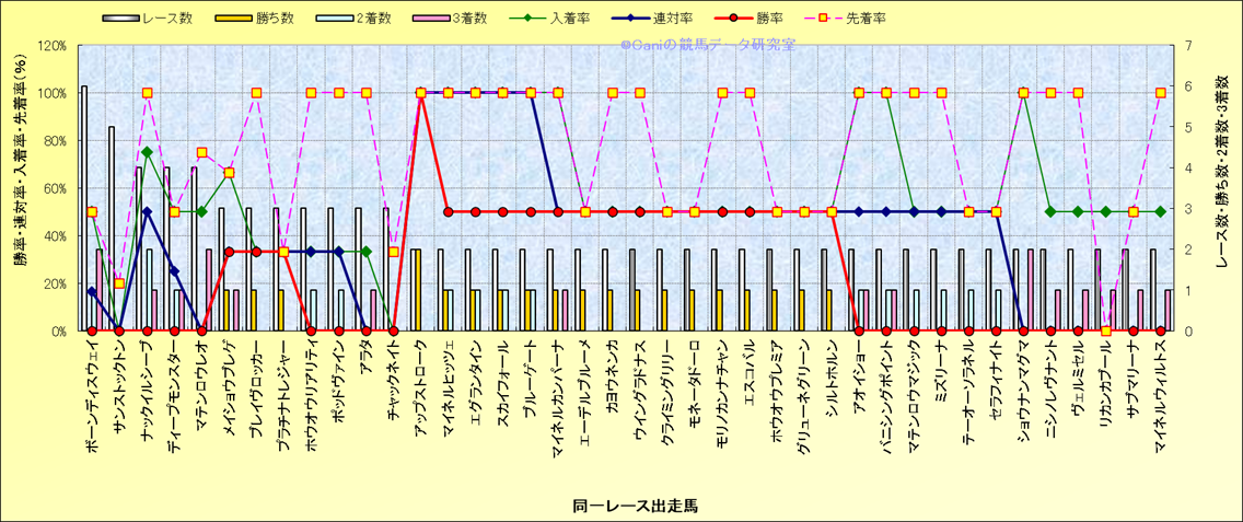 ライバル(相性)解析 同一レースに下記馬が出走した場合の成績とその馬に先着する先着率 |