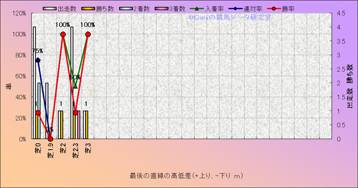コース、最後の直線の高低差別成績(平地) |