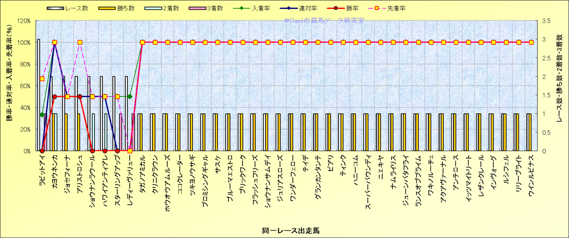 ライバル(相性)解析 同一レースに下記馬が出走した場合の成績とその馬に先着する先着率 |