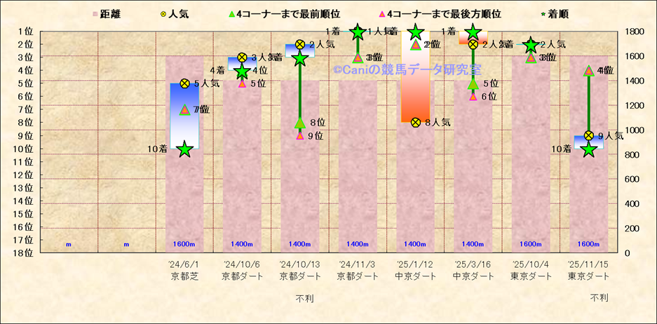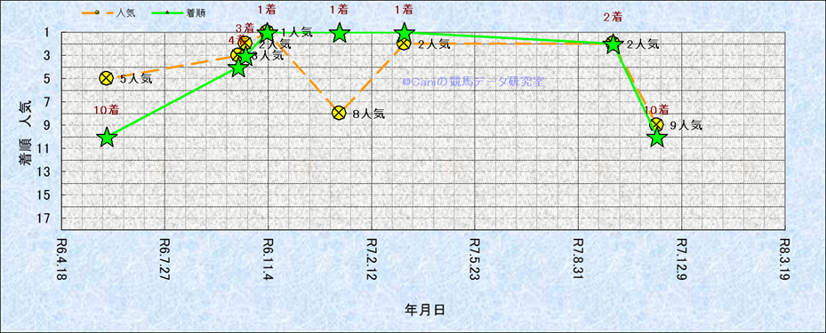 近10走 人気−着順-位置取りの推移 |