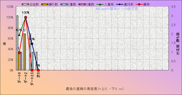 コース、最後の直線の高低差別成績(平地) |