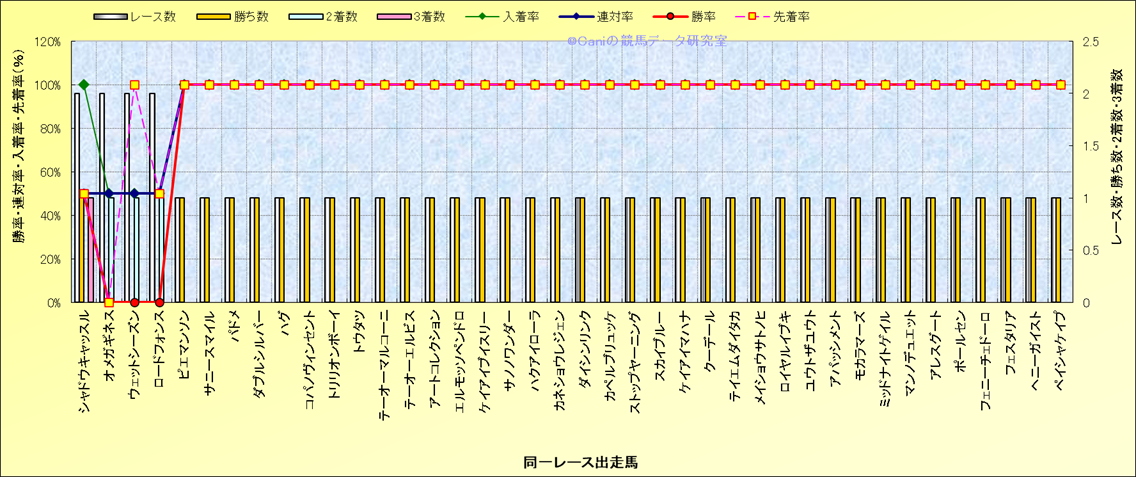 ライバル(相性)解析 同一レースに下記馬が出走した場合の成績とその馬に先着する先着率 |