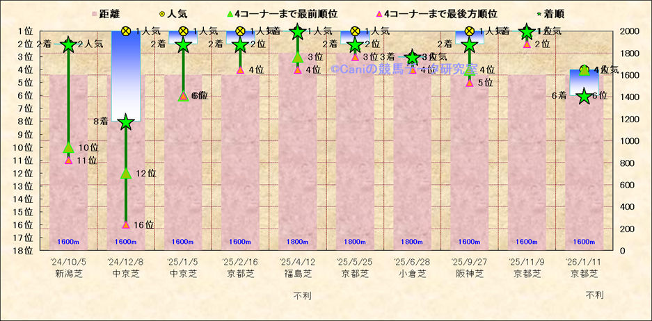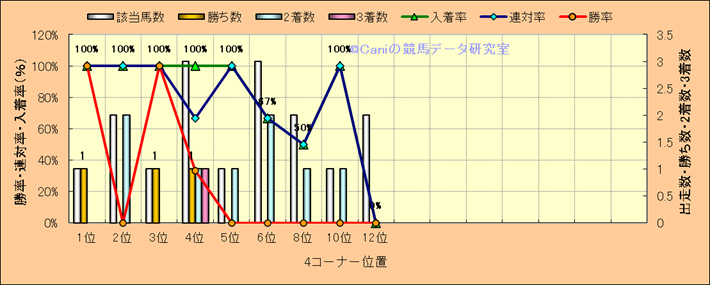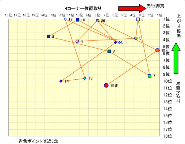 近走における4コーナーでの位置取りと上がり順位(頭数補正後) |