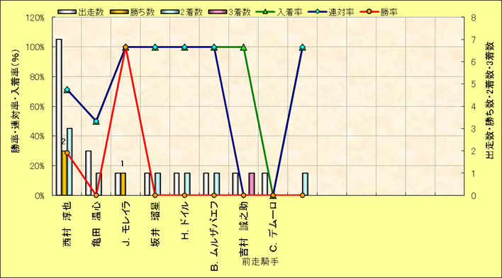 ライバル(相性)解析 同一レースに下記馬が出走した場合の成績とその馬に先着する先着率 |