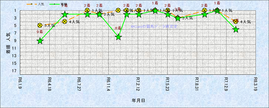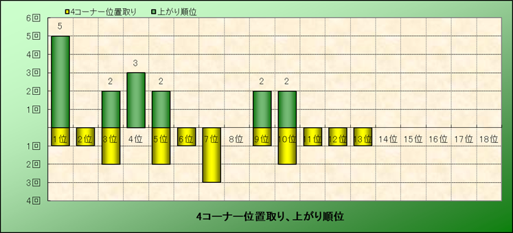 脚質解析 近20レースの4コーナーでの位置取りと上がり順位(頭数補正後) |