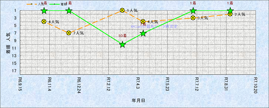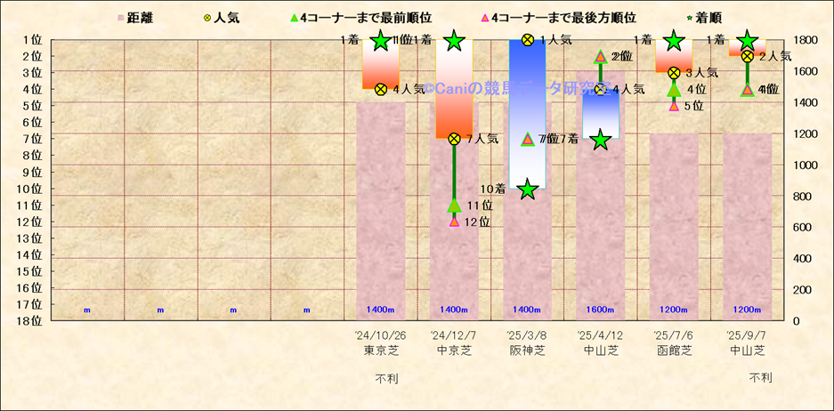 脚質解析 近20レースの4コーナーでの位置取りと上がり順位(頭数補正後) |