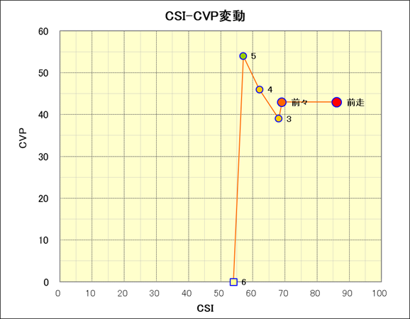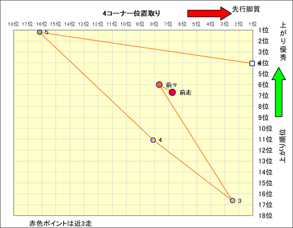 近走における4コーナーでの位置取りと上がり順位(頭数補正後) |