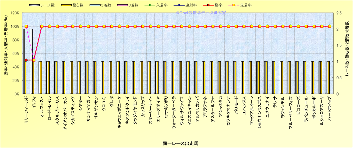 ライバル(相性)解析 同一レースに下記馬が出走した場合の成績とその馬に先着する先着率 |