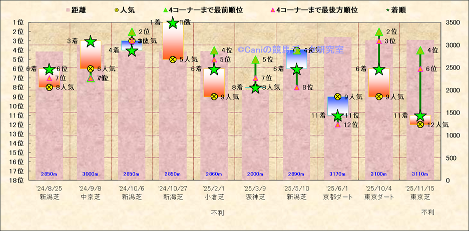 近10走 人気−着順-位置取りの推移 |