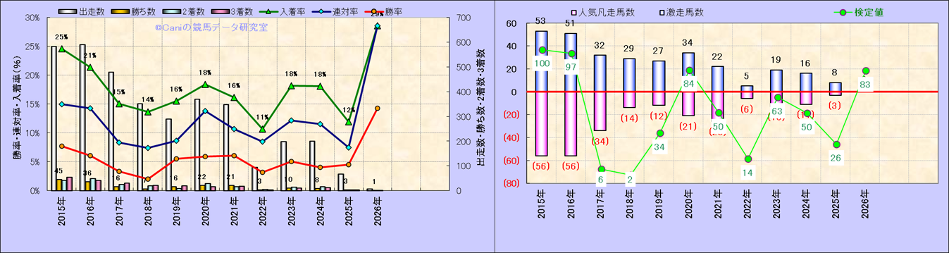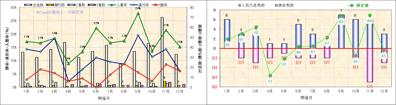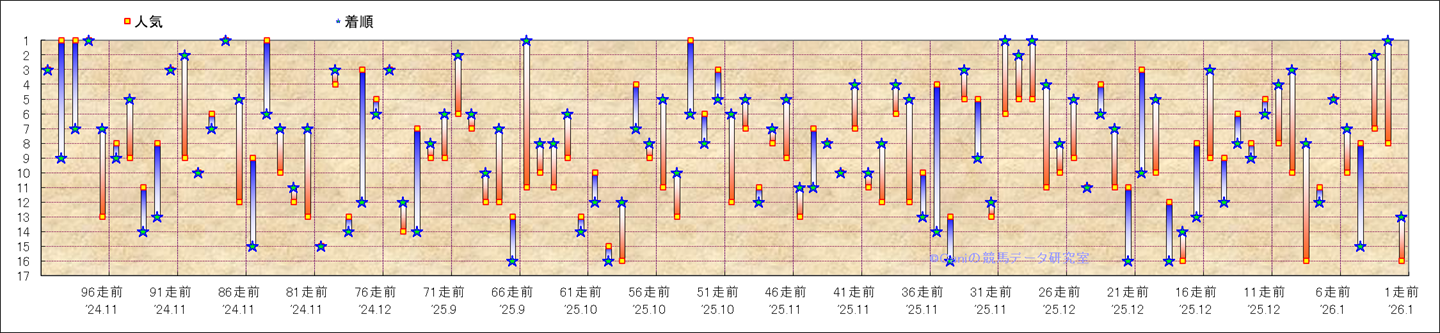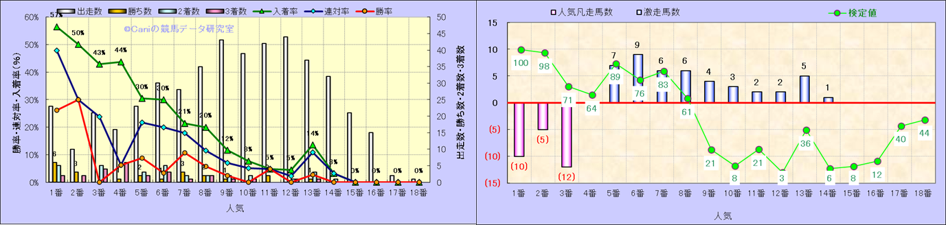 人気凡走馬:1-3番人気で着外、激走馬:5-18番人気で入着 |