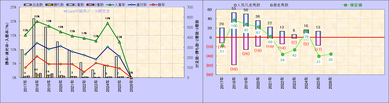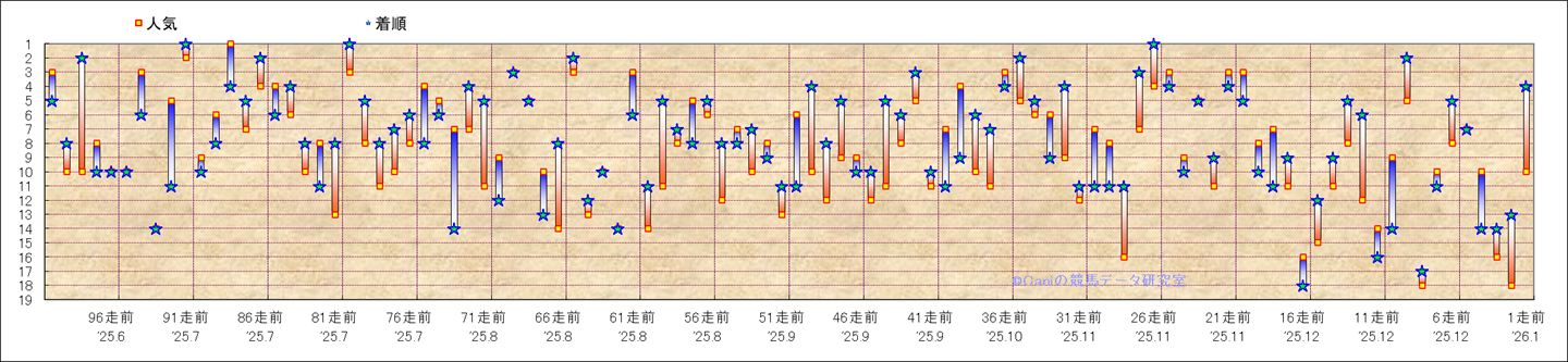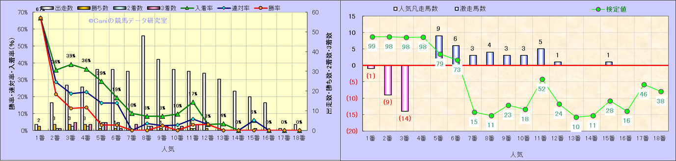 人気凡走馬:1-3番人気で着外、激走馬:5-18番人気で入着 |