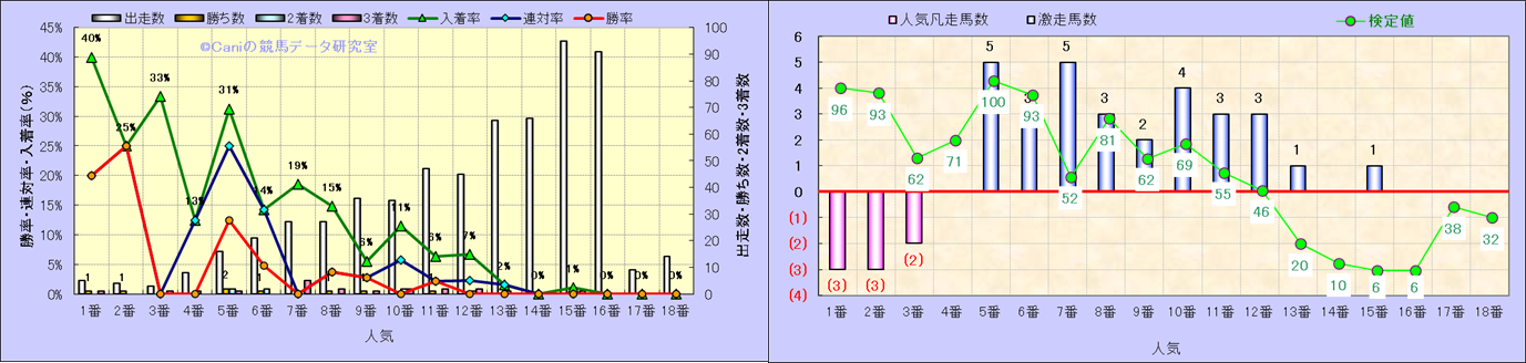 人気凡走馬:1-3番人気で着外、激走馬:5-18番人気で入着 |