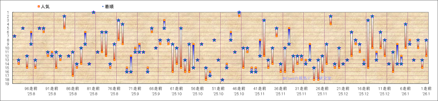 近100騎乗の人気と着順 |