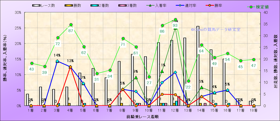 前騎乗レース着順別成績(近300騎乗) |